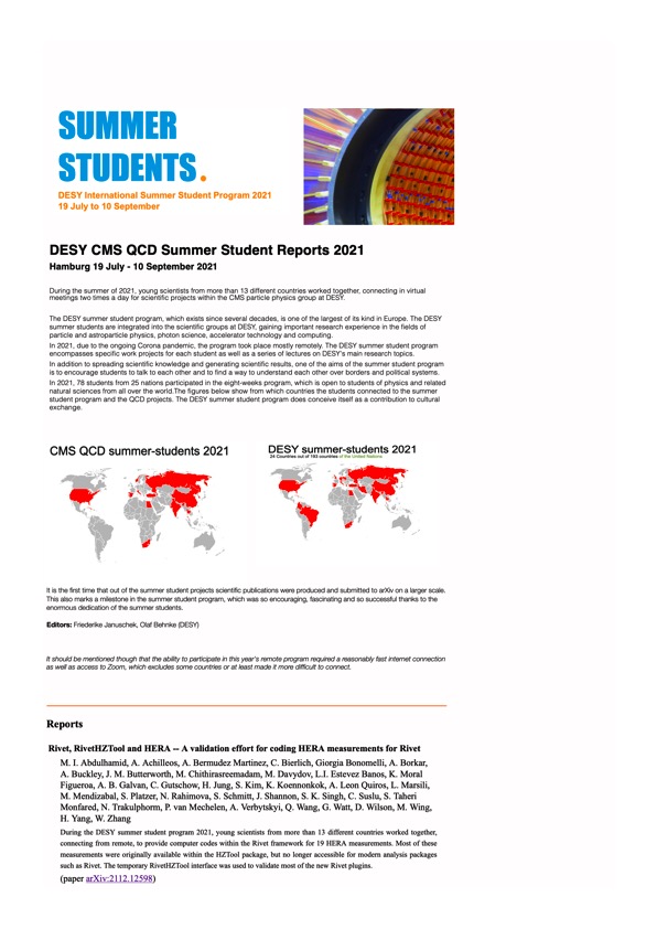 Out of these 3 projects, articles were publishe on arXiv, and we wanted to have them accesssible as a form of proceedings. On advise from the DESY library, we created a cover page (following the instructions from arXiv). The cover page was approved by the DESY FH directorate.